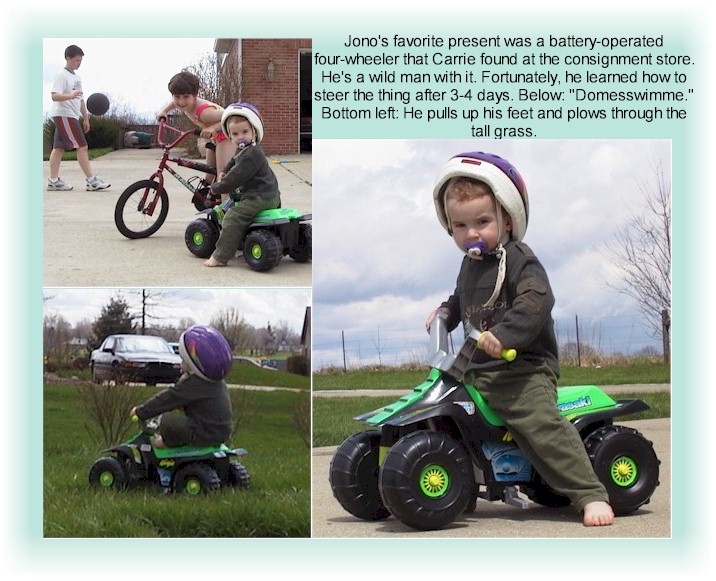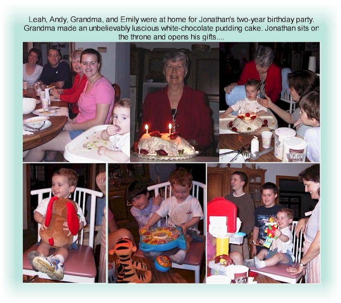 Jonathan's second birthday was an exciting moment. Just the fact that both he and Carrie survived his gale-force energies for two full years is cause for rejoicing. |
