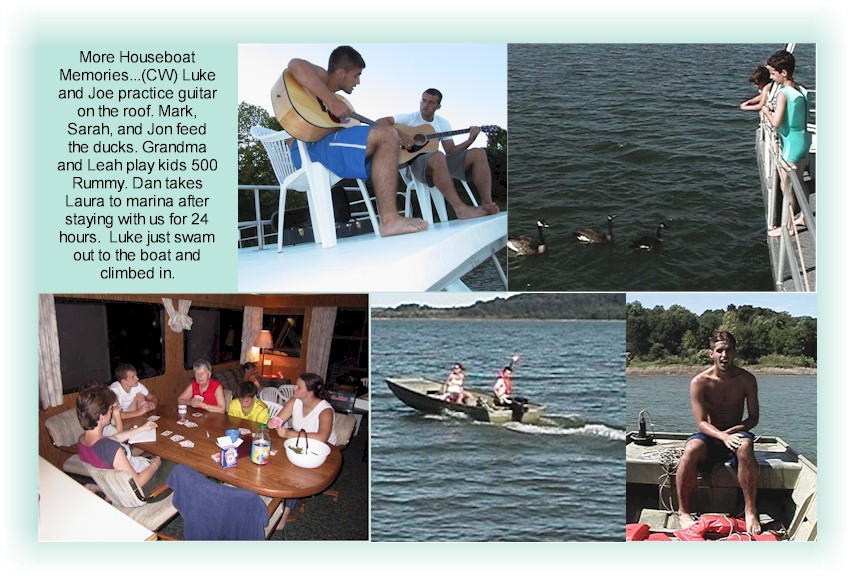 This month marks the beginning of a new era for our family website! My family bought me a digital palmcorder for my birthday, and the houseboat trip was its maiden voyage. Below is our first trial of video on the family website. |