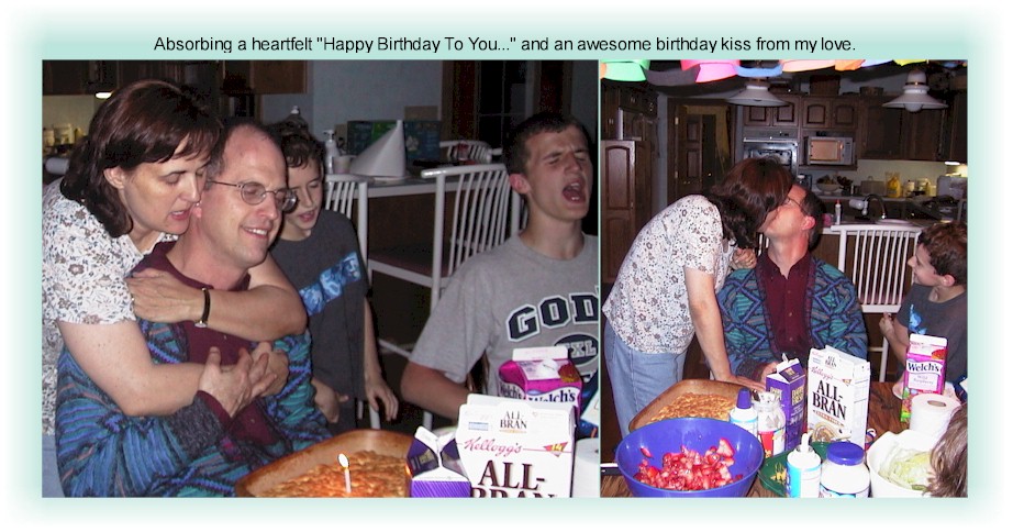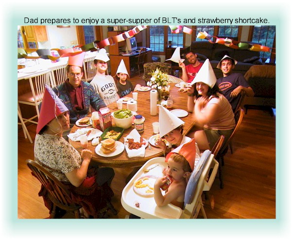 Per tradition, I dutifully followed Carrie's lead and turned 47 on June 13th. Despite a fever and chills, I enjoyed my favorite supper and dessert, and a nifty gift from the whole family: a large framed photograph of our homestead taken from an airplane! |