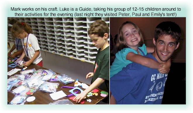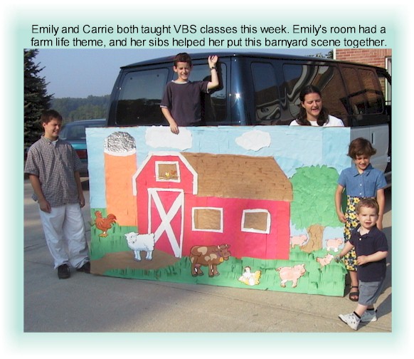 It was a blessing Father's Day to have nine of my ten children here. I have come to enjoy listening to them talk and play together, even when I'm a bystander. Gma Elizabeth told me Gpa Bob enjoyed that so much, and now I'm beginning to understand. Right: It's VBS time again! Carrie's "calling." Mark, Sarah, and Jonathan are participants and the older kids teach. |