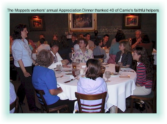 If you know Carrie even a little bit, you know that one of her passions is teaching the children at MOPs (Mothers of Pre-schoolers). She has 40 workers who help her take care of these 140 children. Making the rounds to say Thank-you at Carnegie's restaurant. |