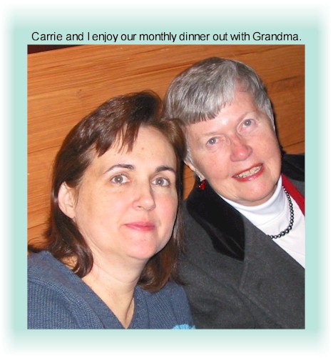 It's been a long, hard, cold snowy winter! Carrie took advantage of the opportunity to learn how to buy on-line and has become an expert eBay-er! Here's a pic of Carrie and Grandma out to eat at Bahama Breeze. |