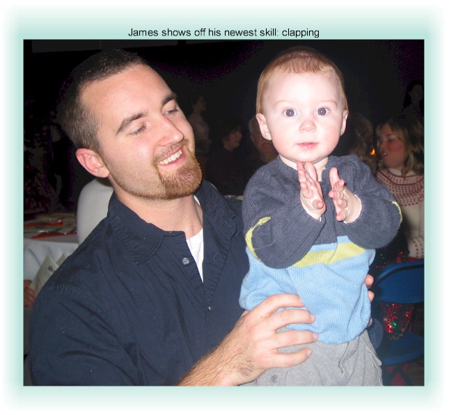 James found this Santa hat and put it on, and Sarah took the picture. James is starting to say a few words. He surely does love to play with his aunts & uncles! He'll be a big brother in three more months! |