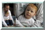 Father & son pictures at 18 months. Reading the newspaper together. Then for a 40-second father-son interview, click Here. |