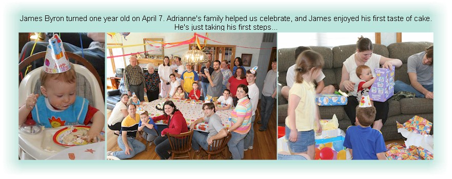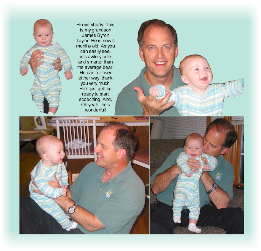 James Byron Taylor Born 4/7/04! Adrianne had induced labor through the night 4/6/04, but by morning was making little progress due to cephalopelvic disproportion (size 9 Taylor head). Then fetal distress and a rush to the O.R. If you don't mind graphic photos, the pix on the left are from the C-section. |