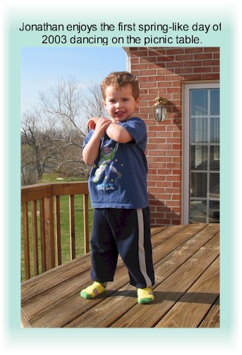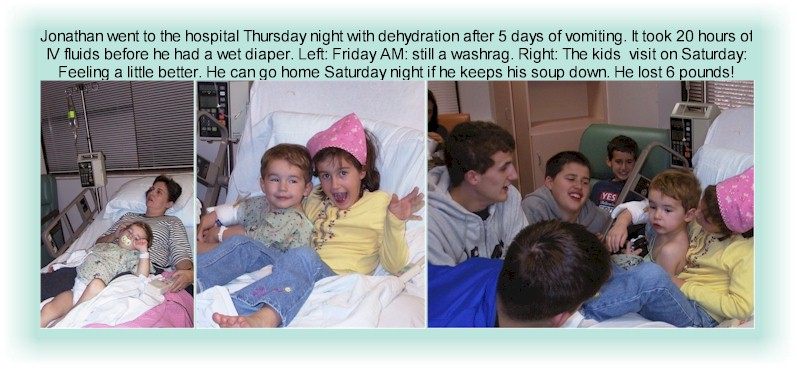In November, 2002 Jonathan became quite ill with vomiting and diarrhea, and lost 6# over the course of a week, culminating in a 48-hour hospitalization for IV fluids. (Also see video) |
