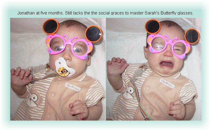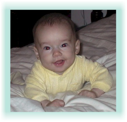 Emily took this one of Jonathan in his bassinet on July 28, 2000. Don't you think he has a Fabulous smile?! |