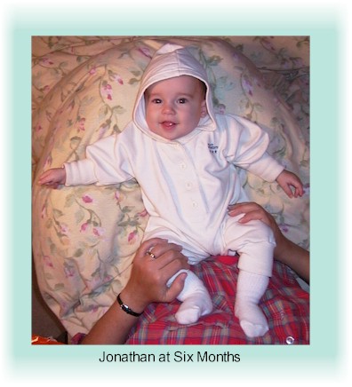 Jonathan turned 6 months on October 12, and his recent Doctor visit confirmed that he had "doubled his birth weight by 6 months." He's almost able to sit up without assistance, and can roll over! |