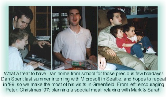 | ...and now is having great success in the School of Computer Science at Purdue. He earned summer internships at Microsoft in '98, '99, and 2000. His family loves to get a little of his spare time! |